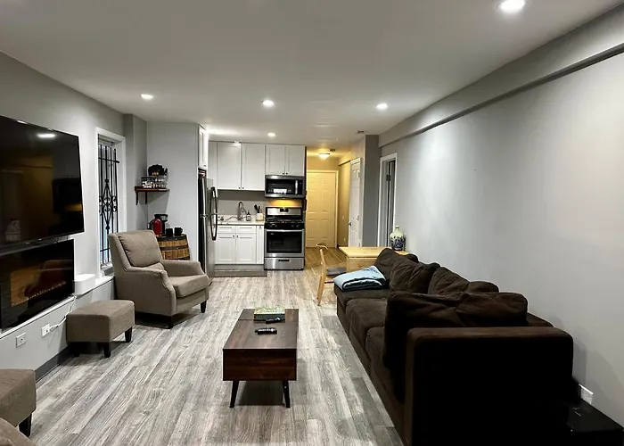 La Esthena Theatre está a unos 10 minutos en coche de este apartamento, mientras que la estación de autobuses Montrose & Spaulding está a unos cuantos pasos de la propiedad. Se encuentra a 4,1 km de la Avenida Devon.